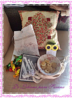 Mi regalo lo recibì de mi amiga Liliana , mi querida MISS, una mujer que tiene unas manos de oro,,,como trabaja la tia ¡¡¡ ,,,,me encanto su regalo, un cojìn precioso de patch, una bolsita con un transfer llena de frutas de Aragòn que ricas ¡¡¡. Muchas gracias Lili....eres un sol.